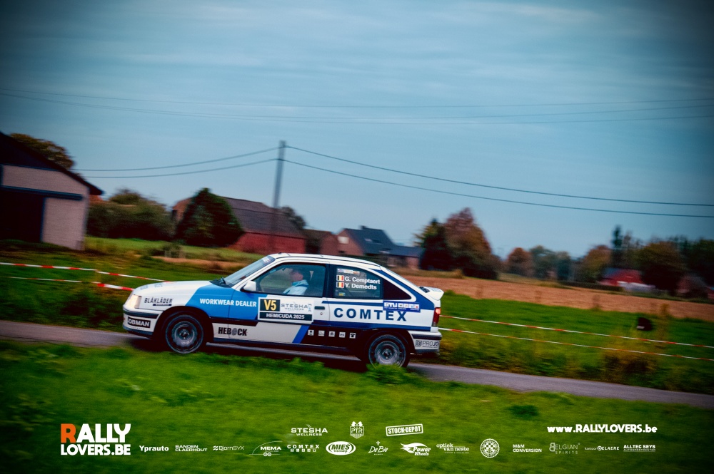 COMTEX WERKKLEDIJ opent rallywedstrijden als veiligheidswagen met een Opel Kadett GSI 16V.